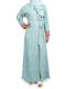 عباية نسائية بلون التركوازي وبأطراف ورديه برباط إغلاق مع طرحة سادة