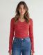 بلوزة نسائية مخططة بياقة رقم سبعة وأكمام طويلة