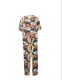طقم نسائي بنطلون مع قميص بأكمام قصيرة مطبوع بأوراق أشجار بألوان زاهية