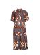 قميص نسائي بقصة ايه لاين بأكمام قصيرة بياقة عالية ووصلة أزرار بطبعات هندسية ملونة