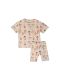 طقم بناتي تيشيرت بطبعات كرتونية لطيفة مع شورت استرتش بخصر مطاطي