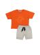 امنحي طفلك إطلالة صيفية مريحة وعصرية باختيار هذا الطقم الرائع. يتكون من تي شيرت برتقالي زاهي بطبعة دونالد داك المميزة، يضفي لمسة مرحة على إطلالة طفلك. الشورت المخطط يكمل الإطلالة بأسلوب أنيق وعصري. مصنوع من خامات ناعمة وعالية الجودة تضمن الراحة طوال اليوم. يمكنك تنسيقه مع حذاء رياضي أو صندل لإطلالة صيفية جذابة.