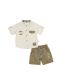 طقم ولادي قميص باكمام قصيرة وياقة مرتفعة بطبعات مع شورت برباط خصر