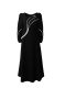 فستان نسائي طويل بقصة رقبة واسعة وبأكمام طويل بقصة ايه لاين مزين بخطوط لامعة