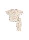بنطلون بيجاما بناتية وتيشيرت بطبعات أوراق الأزهار وياقة مستديرة بأكمام قصيرة