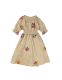 فستان للبنات بأكمام متوسطة الطول بخصر مطاطي بتطريز ازهار ملون وبارز