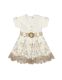 فستان بناتي بأكمام قصيرة مطرز بياقة مستديرة وسحاب اغلاق وأطاف دانتيل وحزام