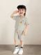 طقم صيفي ولادي مخطط بملصق مبتسم