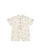 استقبلي فصل الصيف بأناقة مع هذا البربتوز المريح والمنعش لطفلك. يتميز بتصميم عصري بياقة قميص وأكمام قصيرة يمكن طيها وتثبيتها بزر، مما يمنحه مظهرًا أنيقًا وعمليًا في آن واحد. القطعة مزينة بنقشة لطيف لأوراق الشجر بألوان البيج والكريمي الهادئة، مما يضفي عليها لمسة طبيعية وجمالية. الإغلاق بأزرار في الجزء الأمامي وعلى طول منطقة الحفاض يجعل عملية تغيير الملابس والحفاض سهلة وسريعة.