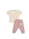 طقم بيجاما بناتية بطبعة أزهار لطيفة بأكمام قصيرة وبنطلون بخصر مطاطي