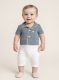 امنحي صغيرك الراحة والأناقة مع هذا الجمبسوت الرائع المصنوع بالكامل من القطن الخالص. يتميز بتصميم فريد يجمع بين المظهر الكلاسيكي والعملية، مما يجعله مثاليًا للارتداء اليومي والمناسبات الخاصة.يتألف الجمبسوت من جزء علوي بتصميم قميص بأكمام قصيرة وياقة كلاسيكية مع حواف متباينة، وتفاصيل مضلعة أنيقة. يزدان الجزء العلوي بصف من الأزرار الأمامية وجيب صغير على الصدر مع منديل جيب، مما يضفي لمسة من الرقي. يتصل الجزء العلوي بجزء سفلي سادة بتصميم شورت، مع أزرار كبس عند منطقة الحفاض لسهولة التغيير. القماش القطني عالي الجودة ناعم ولطيف على بشرة الرضع الحساسة، ويوفر تهوية ممتازة لضمان شعور صغيرك بالراحة طوال الوقت. هذا الجمبسوت الأنيق والعملي هو الخيار الأمثل لطفلك ليتمتع بالأناقة والراحة في آن واحد.