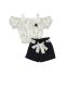 طقم بناتي شورت بخصر مطاطي بجيوب مخفيه وحزام وبلوزة علاقي بأكمام منسدلة مشجرة