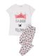 طقم بنطلون بيجاما مع تيشيرت بياقة مستديرة وطبعات