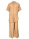 طقم نسائي بنطلون واسع الساقين بخصر مطاطي وبلوزة طويلة بياقة بأكمام قصيرة