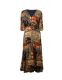 فستان نسائي بمطبوع بالكامل بأكمام متوسطة الطول بياقة بقصة مضلعة برباط خصر