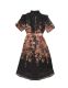 فستان نسائي متوسط الطول بأكمام قصيرة وأزرار بوصلة ذات ياقات عالية مع مطبوعات زهرية