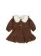 فستان بناتي شتوي بارز الملمس بأكمام طويلة بحواف مطاطية وياقة بقصة أنيقة