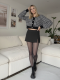 كارديغان نسائي قصير محبوك بنقشة المربعات وأزرار لؤلؤية