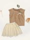 أضيفي لمسة من الأناقة والرقة إلى خزانة ملابس فتاتك الصغيرة مع هذا الطقم الجذاب والمميز من متجر الهرم الاكتروني. يتألف الطقم من بلوزة أنيقة باللون البني ذات تصميم فريد يبرز بتفاصيل كشكشة خفيفة أو نسيج بارز يمنحها مظهرًا عصريًا. تزين البلوزة من الأمام زينة رقيقة على شكل وردة منسقة مع شريط أنيق، مما يضفي عليها لمسة أنثوية ساحرة. تكتمل أناقة الطقم بتنورة رائعة باللون السكري الفاتح، تتميز بطبقات من الدانتيل المزخرف بشكل فني، مع حافة سفلية مزينة بالدانتيل لإضفاء لمسة نهائية فاخرة. التنورة مزودة بخصر مطاطي لتوفير أقصى درجات الراحة والملاءمة لفتاتك أثناء اللعب والتحرك. هذا الطقم مثالي للمناسبات الخاصة، الحفلات، أو حتى للارتداء اليومي لإطلالة أنيقة ومريحة.