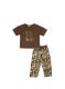 بجامة بناتية بطبعات انيقة بنطلون مشجر برباط مع تيشيرت بأكمام قصيرة بطبعة دب