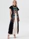 يتميز هذا الفستان الراقي بتصميم مزدوج يمنح إطلالة أنيقة وفريدة من متجر الهرم الالكتروني. يتكون من طبقة داخلية تجمع بين الحرير الأسود الناعم في الجزء العلوي متصلة بتنورة طويلة المصنوعة من قماش باللون الأبيض، مما يضفي لمسة أنثوية حالمة. أما الطبقة الخارجية، فهي عبارة عن رداء فاخر باللون الأسود مزين بتطريزات هندسية ملونة ومطعمة بالفصوص البراقة، مع فتحة أمامية تكشف عن الطبقة الداخلية بأسلوب جذاب وأنيق. تصميمه المستوحى من الأزياء الشرقية مع لمسات عصرية يجعله خيارًا مثالياً للمناسبات الفاخرة والسهرات.