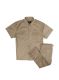 طقم رجالي جامبو قميص بأكمام قصيرة بتصميم بارز مع بنطلون طويل برباط وجيوب عملية