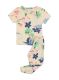 طقم بنطلون بيجاما بطبعات أزهار بألوان زاهية وتيشيرت بياقة مستديرة