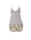 بيجاما نسائية شورت برباط خصر بطبعات أزهار مع تيشيرت بأكمام علاقي واطراف دانتيل