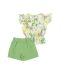 طقم بناتي شورت بخصر مطاطي مع بلوزة بأكمام كاب مطبوعة بالكامل وياقة مستديرة