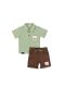 طقم قميص ولادي بياقة وأكمام قصيرة مع شورت برباط خصر وجيوب