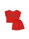 طقم بجامة تيشيرت بأكمام قصيرة بطبعات نصية وشرت بخصر مطاطي