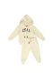 طقم بناتي شتوي بقبعة متصلة وأكمام طويلة بجيوب أمامية وطبعة نصية مع بنطلون برباط