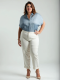 بلوزة نسائية عصرية ومريحة بلون أزرق فاتح هادئ من متجر الهرم الالكتروني. تتميز بتصميمها الفضفاض والأكمام الواسعة التي تأخذ شكل "الدولمان"، مما يمنحها مظهرًا مريحًا وعصريًا. القماش خفيف وناعم، مع نقشة طولية بسيطة تضفي لمسة من التفرد. تحتوي على ياقة قميص كلاسيكية وأزرار أمامية بلون فاتح. هذه البلوزة مثالية للإطلالات اليومية المريحة والأنيقة، وتناسب أجواء الصيف الحارة.