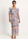 فستان نسائي طويل وأنيق من متجر الهرم الالكتروني، يتميز بنقوش زاهية بألوان صيفية على خلفية بيضاء. يتمتع الفستان بقصة مريحة مع ياقة V وأكمام قصيرة برباط، وبخصر مطاطي وهو مثالي لإطلالات الصيف المبهجة والمناسبات النهارية.