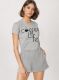 تيشيرت بياقة مستديرة وأكمام قصيرة بطبعات